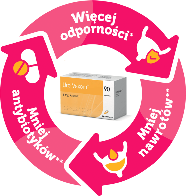 * Schmidhammer S et al. An Escherichia coli-based oral vaccine against urinary tract infections potently activates human dendritic cells. Urology. 2002;60(3):521-526; Huber M et al. Immunostimulatory activity of the bacterial extract OM-89. Eur J Med Res. 2000;5(3):101-109; Bessler WG et al. Immunostimulatory properties of the bacterial extract OM-89 in vitro and in vivo. Arzneimittelforschung. 2010;60(6):324-329; Pham TV et al. Metabolic and functional stimulation of lymphocytes and macrophages by an Escherichia coli extract (OM-89): in vitro studies. J Biol Response Mod. 1990;9(2):231-240. ** Schulman C et al. Oral immunotherapy of recurrent urinary tract infections: A double-blind, placebo-controlled, multicenter study. J Urol. 1993;150(3):917-921.